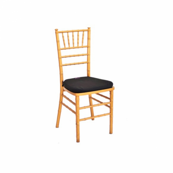 CHIAVARI STOEL HOUTKLEUR MET ZWART KUSSEN